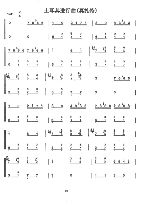 莫扎特 土耳其进行曲简谱降b调(双手简易版)