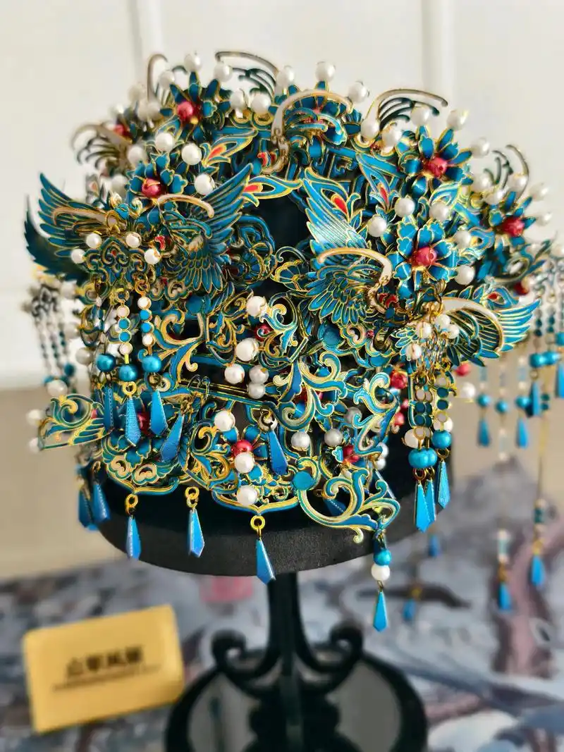 自己设计改珠的拼酷点翠凤冠成品.#凤冠霞帔 #拼酷凤冠 #中