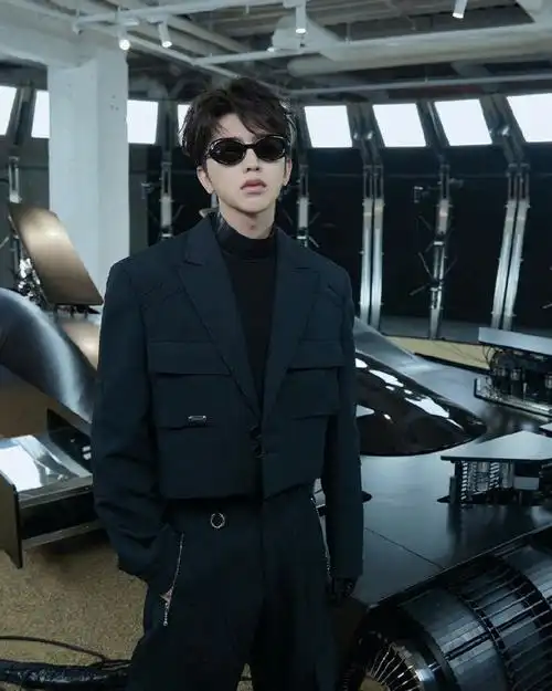 prada代言人蔡徐坤##蔡徐坤灰色西装墨镜大片