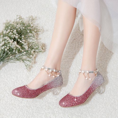 新款女童公主鞋小女孩走秀小主持钢琴儿童高跟鞋水晶鞋礼服演出鞋