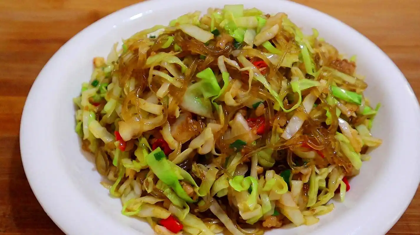 包菜炒粉丝|碳水我的最爱!一个疫情真是把包菜的各种吃法都试过 - 抖