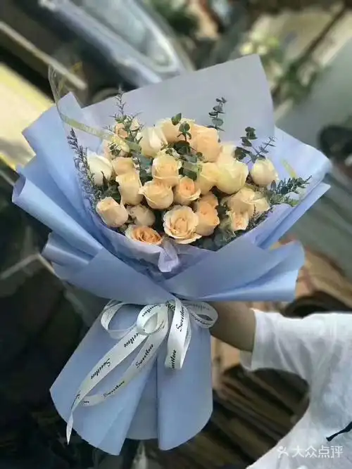 19支香槟玫瑰搭配尤加利叶花束 适应人群;爱人,朋友 亲人