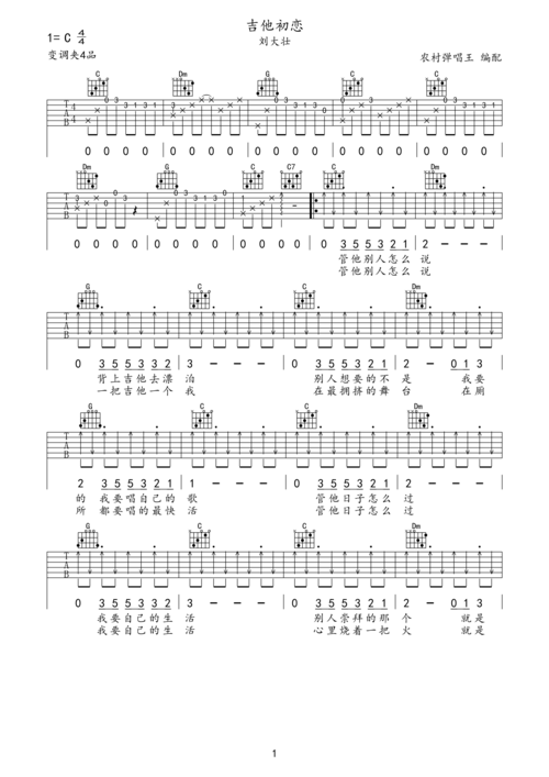 吉他初恋吉他谱_刘大壮_c调弹唱六线谱_弹手吉他上传