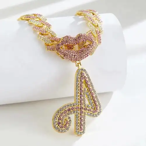 欧美街头26个字母吊坠嘻哈个性镶钻古巴链项链小众情侣rapper饰品
