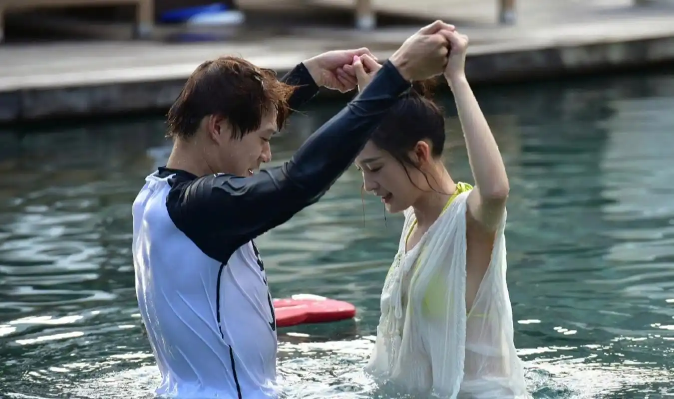 李沁和魏大勋在《我们相爱吧》中的泳池戏水剧照,到底是甜蜜还是过于