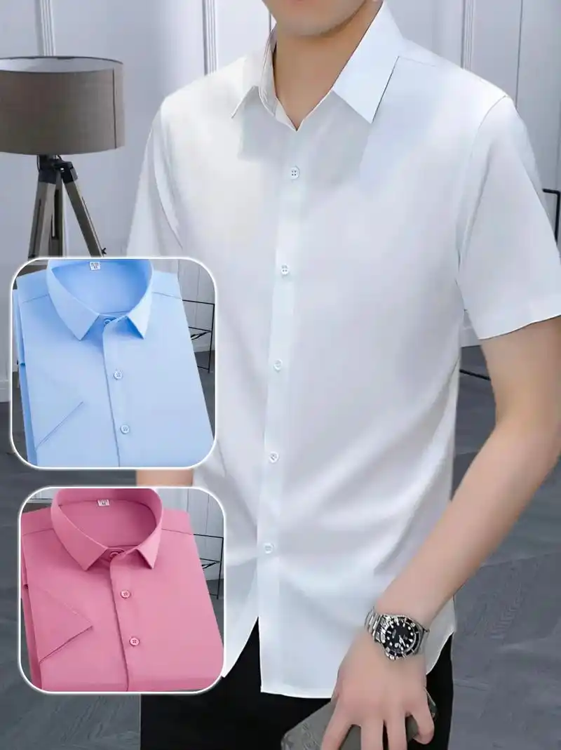 2022春夏白衬衫男士短袖商务休闲正装潮流修身职业免烫白色衬衣寸