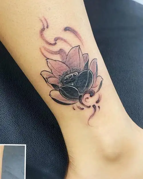 荷花遮盖狐狸纹身图片_腿部纹身图案