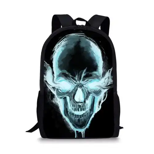跨境定置火焰骷髅头学生书包 16寸双层中小学男孩蓝色背包批发