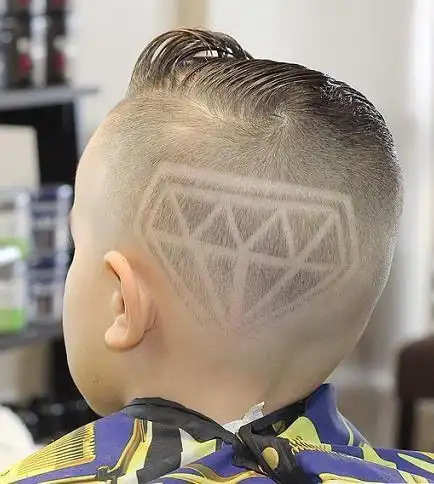 小男孩最新时尚莫西干剃一半雕刻花纹设计,半光头半寸头儿童雕花发型