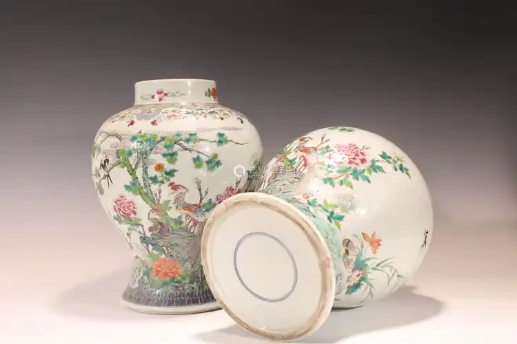 清粉彩花鸟将军罐一对