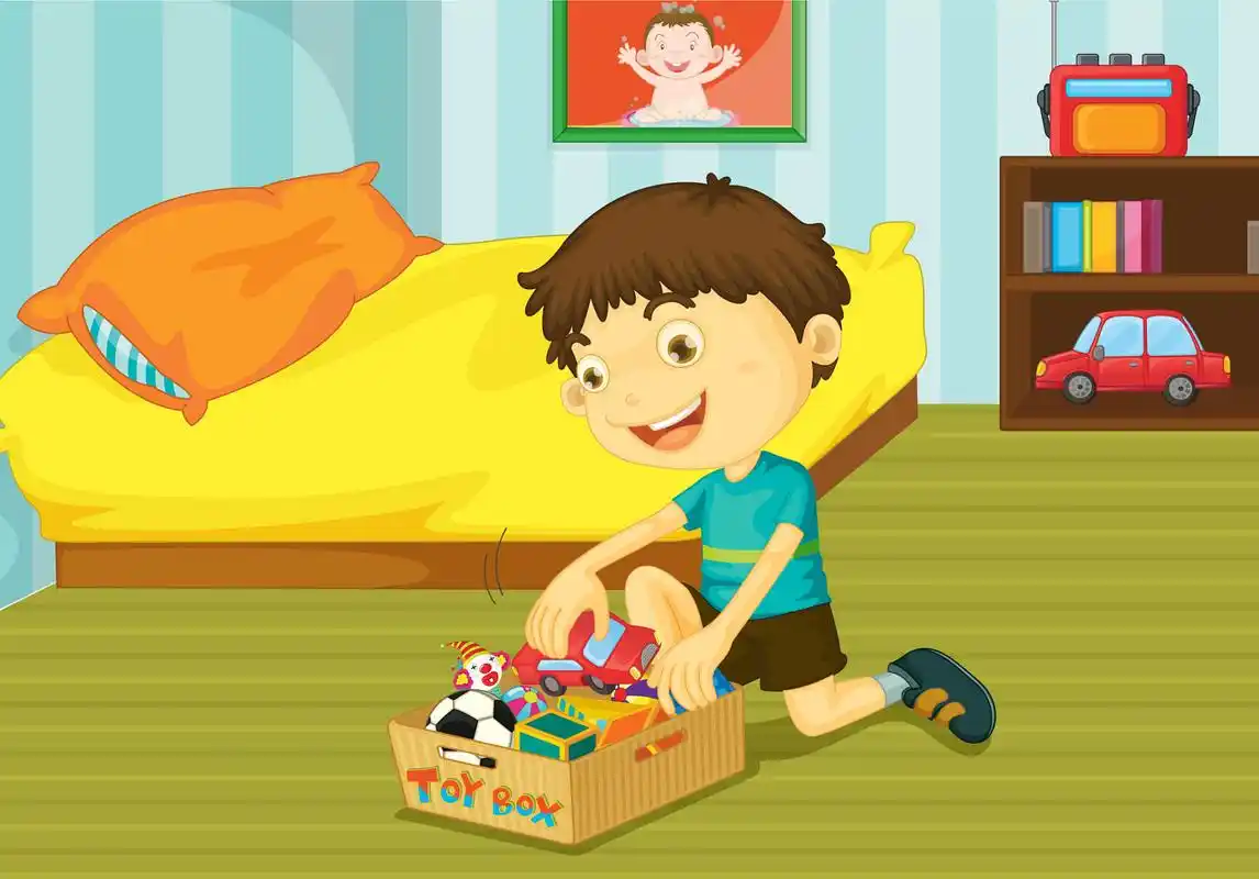 和爸爸妈妈一起整理自己的房间哦.把玩完的玩具放回原处吧!
