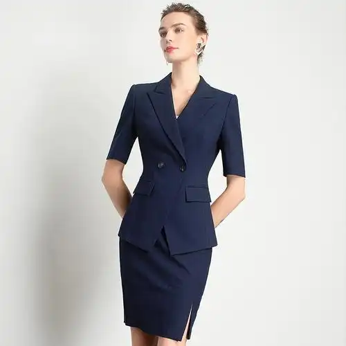 新款时尚ol风高端职业商务通勤藏青色白领总裁西装套装2021年夏季