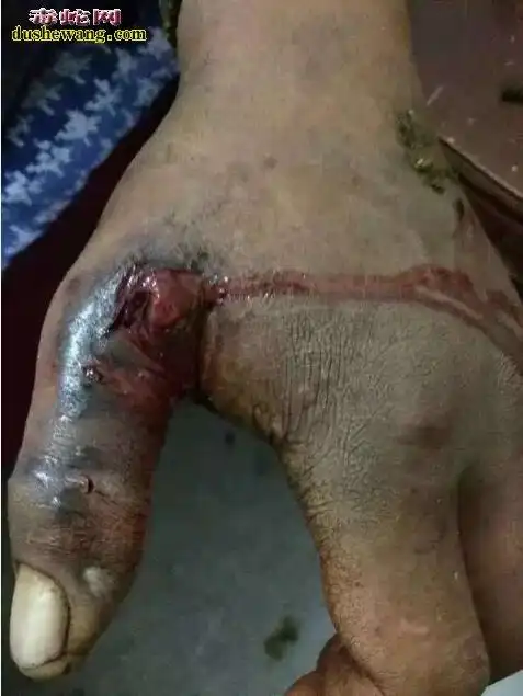 已经植皮的咬伤患者手臂咬伤的手指基本没有用了,五步蛇咬死人图片