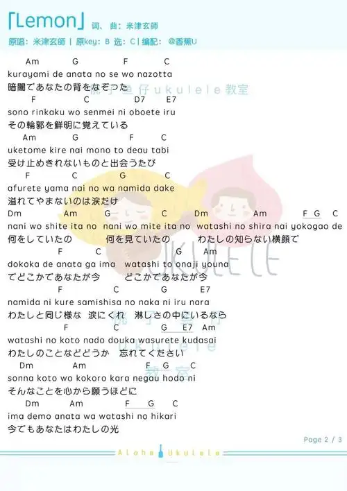 lemonbull米津玄师尤克里里弹唱曲谱