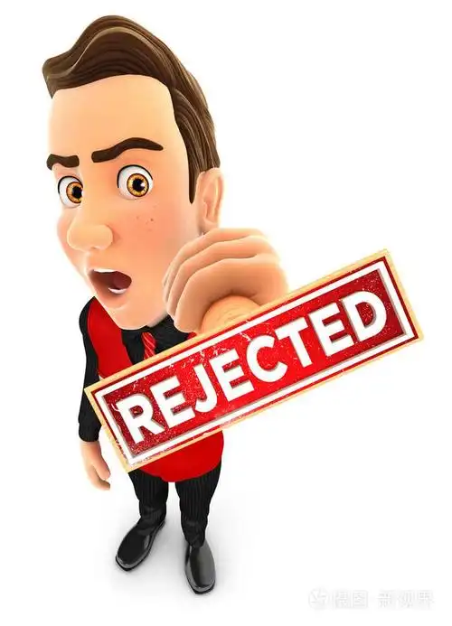 3d 卖方拒绝盖章, 插图与孤立的白色背景