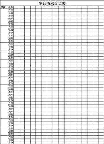 吧台酒水盘点表
