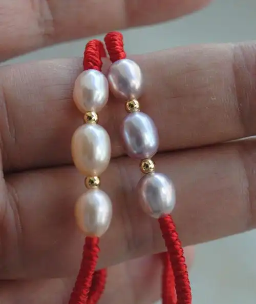 红线编织天然珍珠手链7-8mm颗粒珠玉器红绳手链的做法