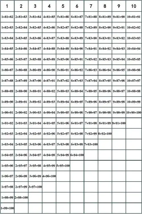 100以内加法口诀表