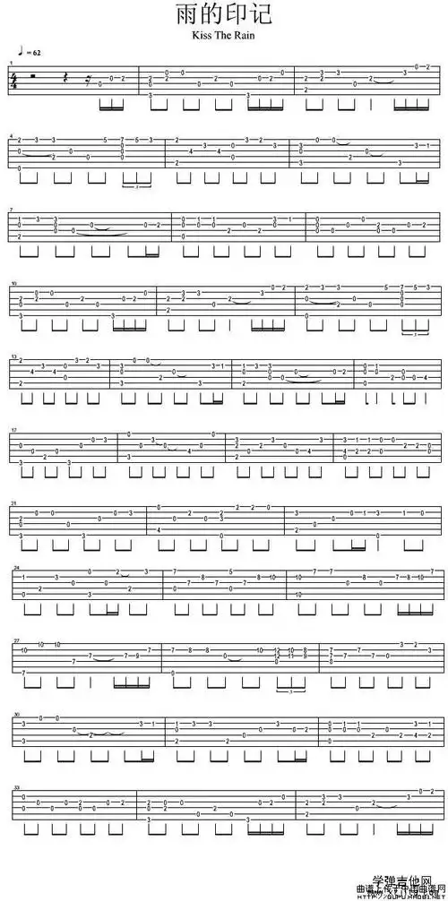 《雨的印记(kiss the rain)》,330903(六线谱 吉他谱)--弹琴吧
