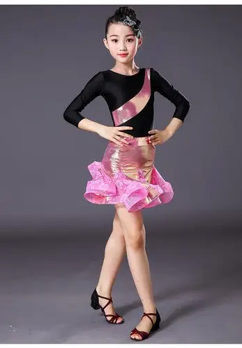 拉丁舞服女童冬季新款练功训练服装儿童少儿拉丁舞蹈裙比赛演出女
