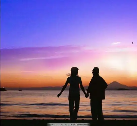 黄昏日落情侣看海背影图片