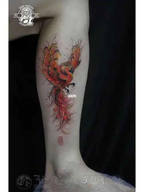 小腿 涅槃火凤凰 08长沙子沐刺青