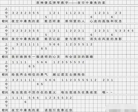 原神夜空中最亮的星琴谱