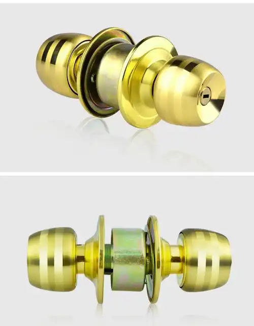 球形执手锁卧室内房门锁老式把手球锁球形门锁通用型圆球锁 金色 双舌