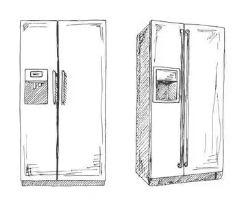 手绘冰箱设置隔离在白色背景上的冰箱.矢量图的素描样式照片