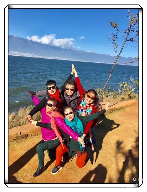 老同学五人摆个大妈式的造型