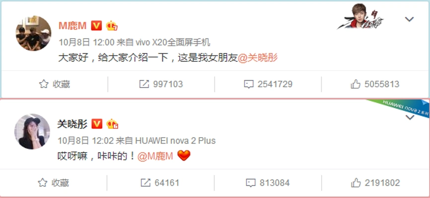 当时官宣的时候微博直接宕机瘫痪了,毕竟当时鹿晗是顶流,而关晓彤则