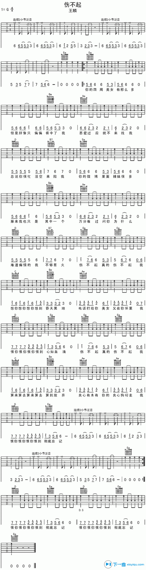 伤不起吉他谱扫弦版g调_王麟伤不起六线谱扫弦版 吉他谱