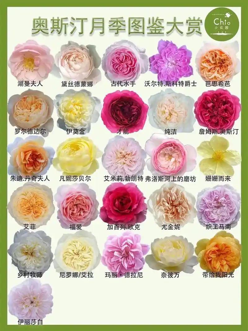 奥斯汀月季图鉴大赏.图文转载自某书博主:chio 小花园 - 抖音