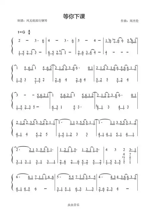 等你下课-周杰伦〖数字简谱〗钢琴谱-风无痕流行钢琴-虫虫钢琴