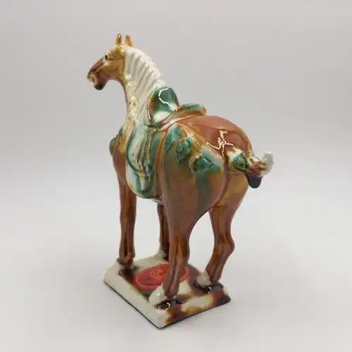 "马到成功"创汇期唐三彩马摆件,底座两边刻"名优洛阳唐三彩"
