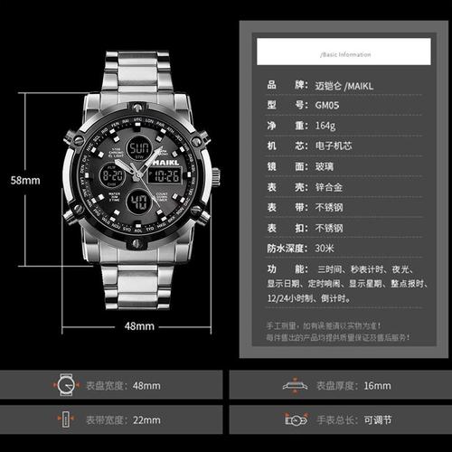 双显商务多功能钢带三时间防水男款学生电子表maikl流行少年男士