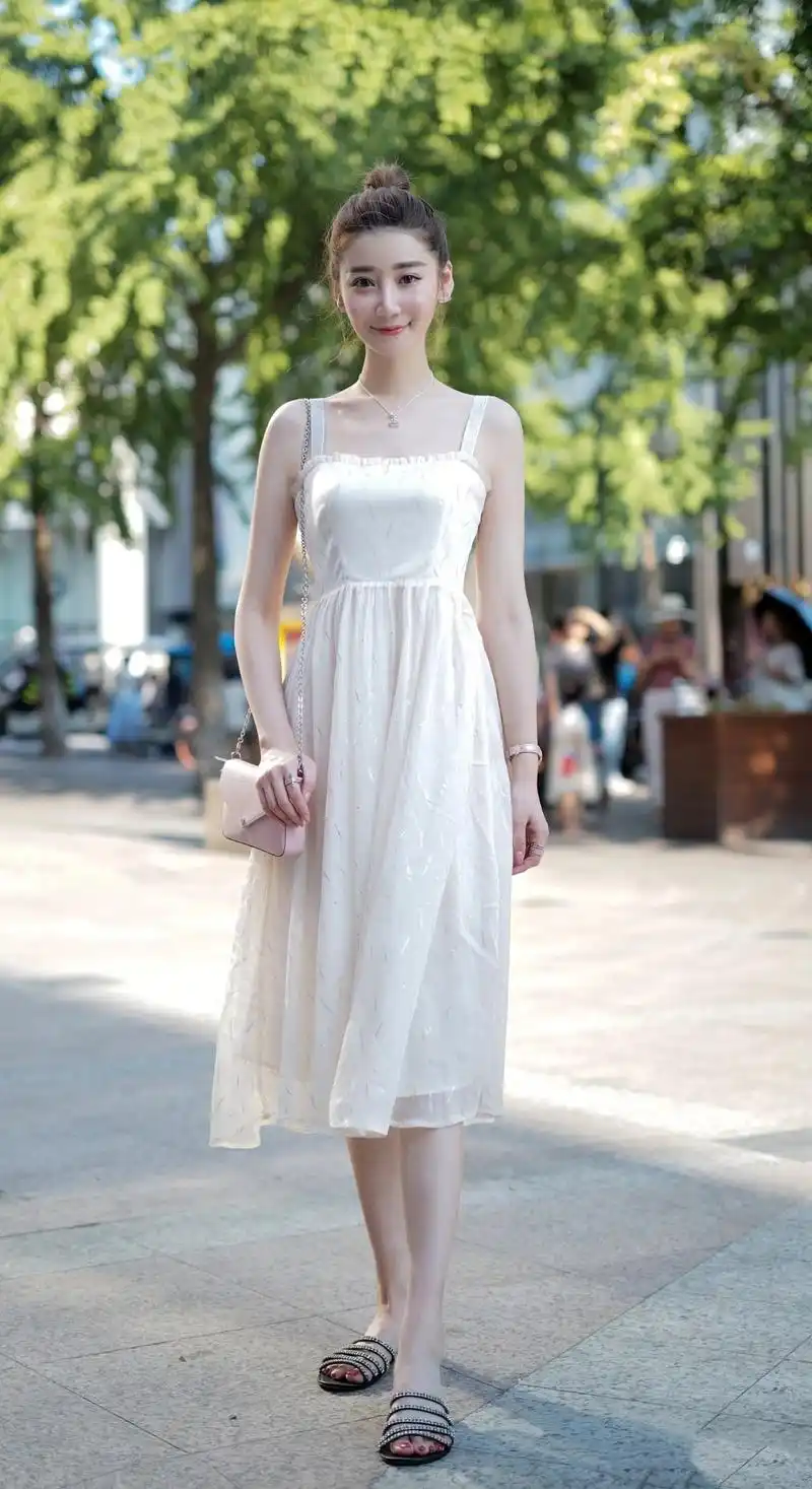 小姐姐身穿白色的连衣裙,有一种可爱的"小公主范",青春可爱