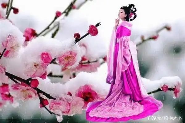 雪中腊梅配一美人