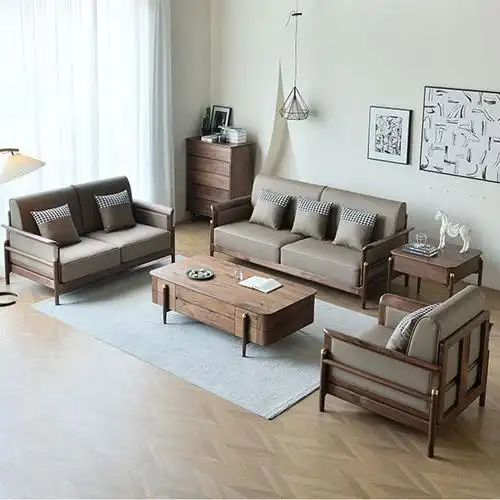 北美黑胡桃木沙发 全实木沙发 简约现代客厅家具轻奢北欧沙发