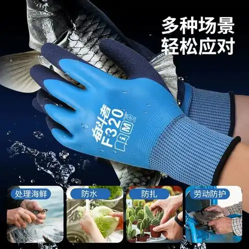防割防刺手套杀鱼专用手套赶海手套防水防扎防滑抓螃蟹防夹手套蓝色m