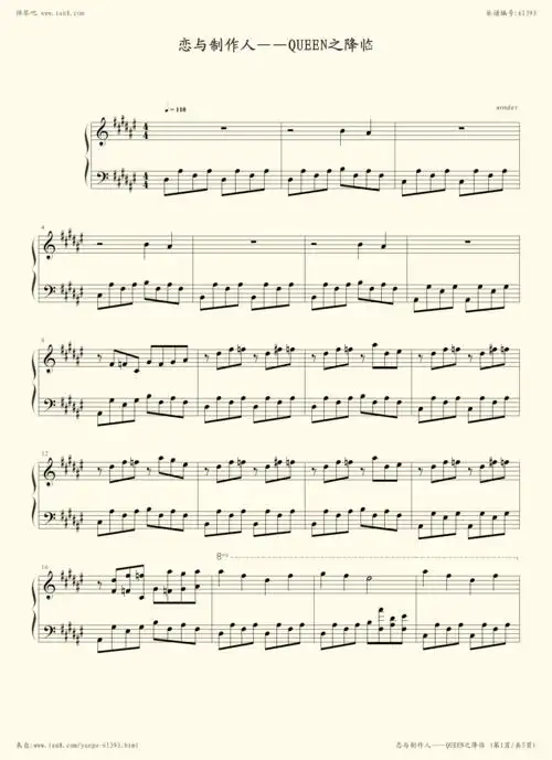 钢琴谱:恋与制作人——queen之降临