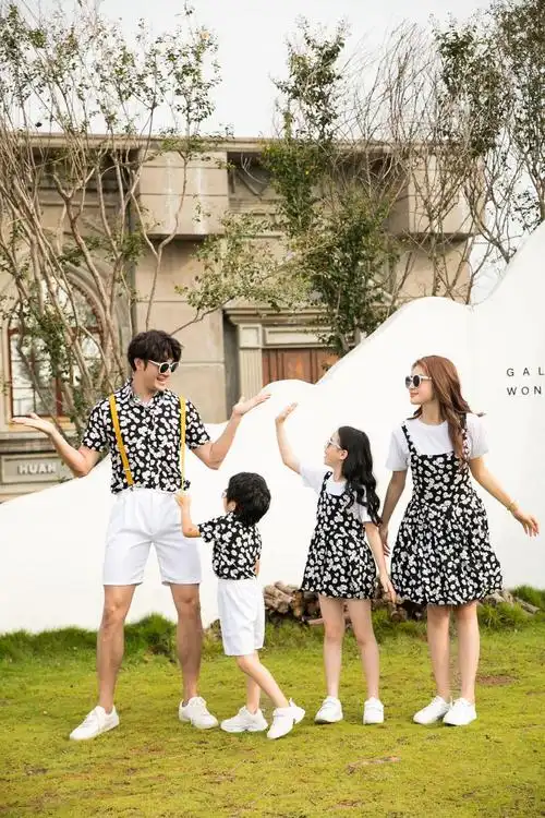 展会写真拍照艺术全家福四口新款一家服装摄影亲子装