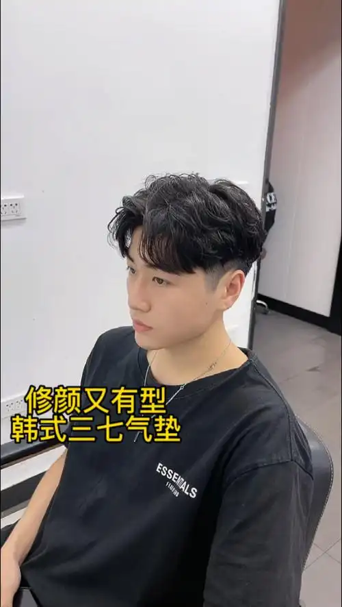 韩式男生纹理烫,看起来很乖的男生发型,后脖子头发削薄清爽时尚.
