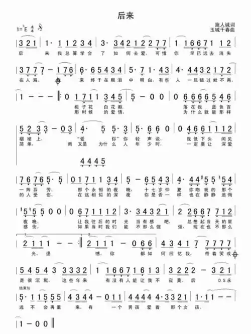 后来歌词简谱