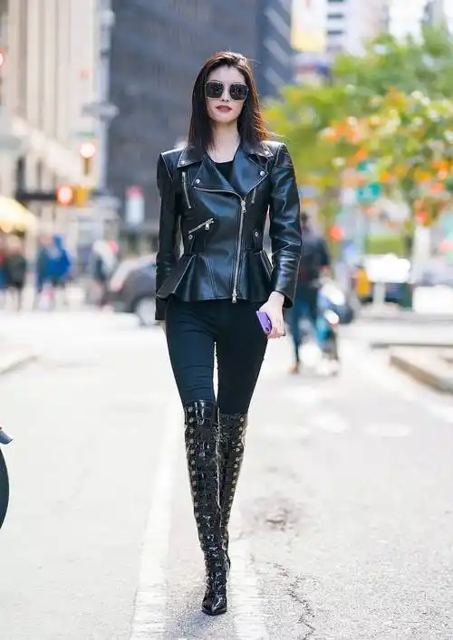 街拍:帅气的皮夹克美女,霸气十足,气场全开_皮衣_黑色_高跟鞋