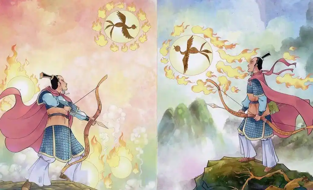 后羿射日是中国古代神话中的一个重要故事,讲述了后羿利用神箭射暇排