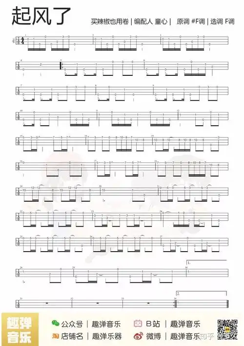 有木有「起风了」尤克里里指弹版简谱?