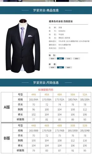 六种不同版型男士西服尺码对照表