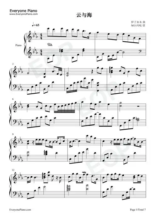 阿yueyue《云与海》c调简单版钢琴谱-虫虫钢琴