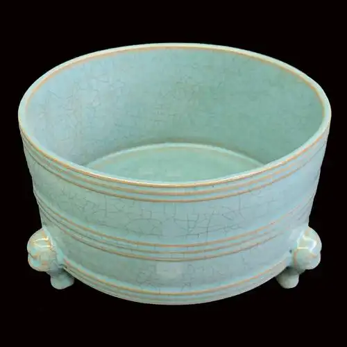 汝窑青瓷冰裂三足水洗(宋徽宋)